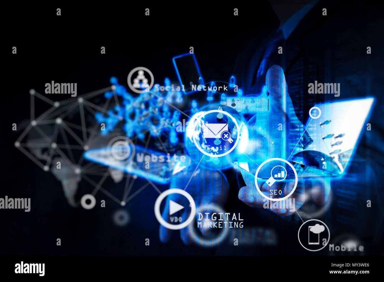 Digital Marketing Media Website Ad Email Social Network Seo Video Mobile App In Virtual Screen Double Exposure Of Businessman Shows Modern Tech Stock Photo Alamy